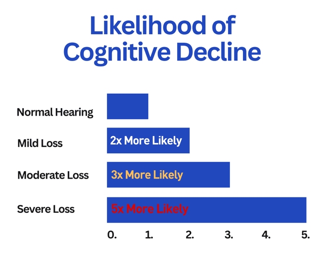 A decade-long study conducted by Dr. Frank Lin showed a five-fold increase in dementia for individuals with mild, medium, or severe hearing loss.